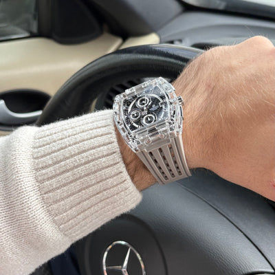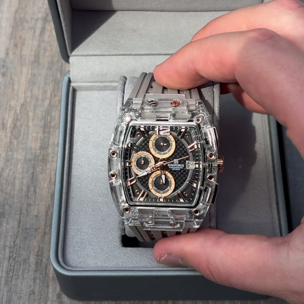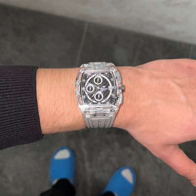 Ich war ehrlich gesagt überrascht, wie hochwertig die Uhr wirkt. Das Carbon-Zifferblatt sieht mega edel aus, das Silikonband trägt sich super angenehm, und das Gewicht ist genau richtig. Würde sie sofort wieder kaufen!